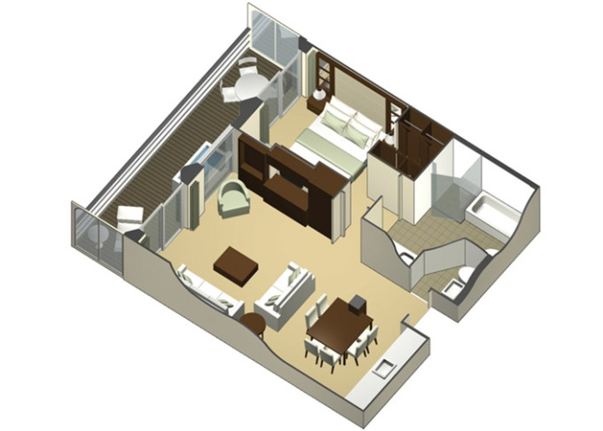 | SG - Signature Suite 41 m² + balkon 11 m². 14. paluba. Max 4 osoby. Výhody Suite. | 97 852 Kč 97 852 Kč za osobu |