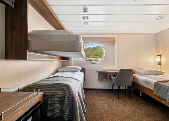 | U2 - Vnější kajuta Arctic Superior 10 - 14 m². Neotvíratelné okno. Tv, varná konvice. Max 2 osoby. | 305 751 Kč 152 875 Kč za osobu | ||