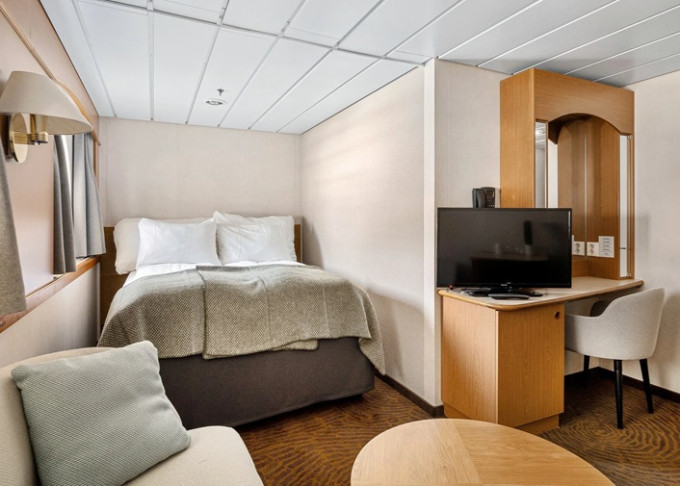 | QJ - Vnější kajuta Arctic Superior 16 - 17 m². Neotevíratelné okno s omezeným výhledem. Oddělené postele, obývací část. Tv, varná konvice, minibar. Max 2 osoby. | 288 759 Kč 144 380 Kč za osobu | ||