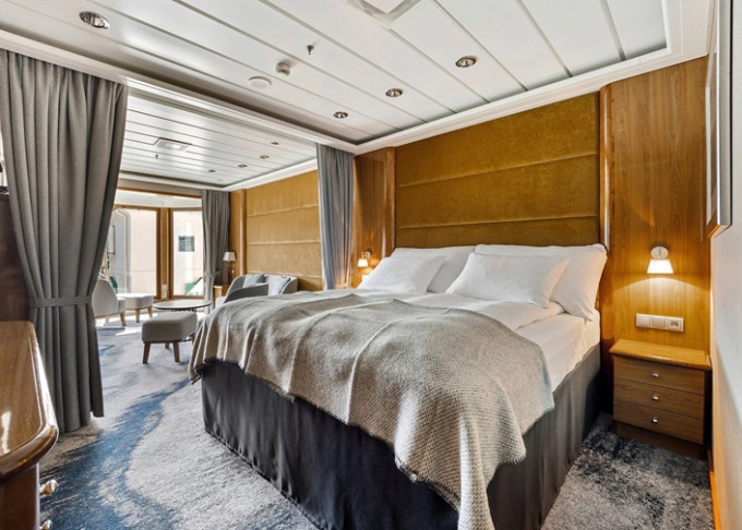 | M2 - Expedition Suite na hornej palube s balkónom 23 m². Balkon (některé mají pouze okno!). 1 nebo 2 pokoje. Obývací část, TV, varná konvice, minibar. Dárek na uvítanou. Max 2 osoby. | 455 228 Kč 227 614 Kč za osobu |