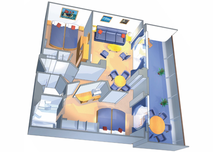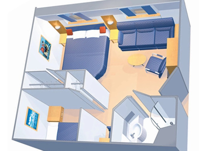 | VP - Ocean View Panoramic Suite (bez balkonu) 37,5 m². Celoplošné neotevíratelné okna. Výhody Royal Suite Class. Výhody Royal Suite Class. 12. paluba. Max 6 osob. | 83 559 Kč 41 780 Kč za osobu | ||