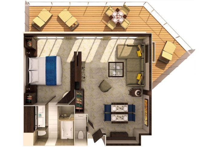 | J1 - Junior Suite s velkým balkonem 25 m² / balkon 15 m². Výhody Royal Suite Class. 6. až 13. paluba. Max 4-5 osob. | 218 069 Kč 218 069 Kč za osobu |