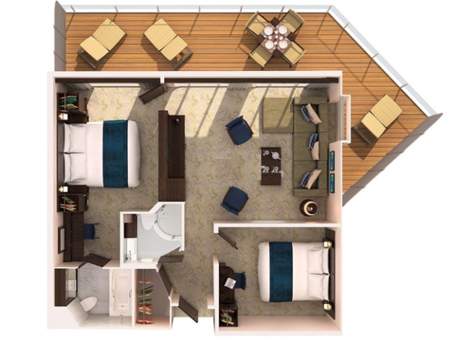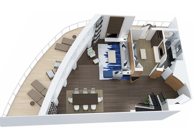 - Prostorné kajuty pro skupiny – ultra prostorné pokoje s výhledem na oceán až po špičková Villa Suite se čtyřmi ložnicemi.