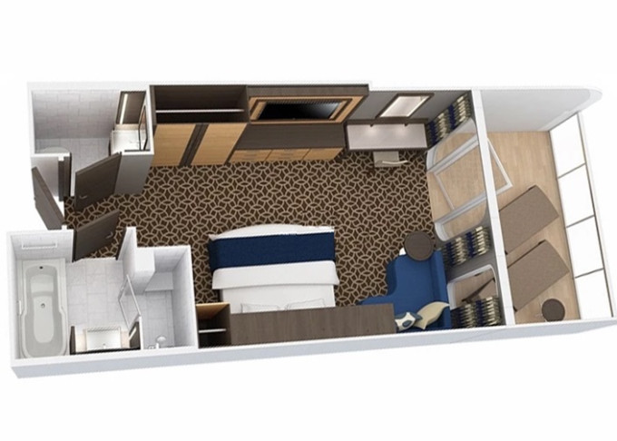 | 2E - Kajuta s balkonem / omezený výhled 18 m² / balkon s omezeným výhledem 5 m². 6/7/8/13. paluba. Max 4 osoby. | 163 020 Kč 163 020 Kč za osobu | ||