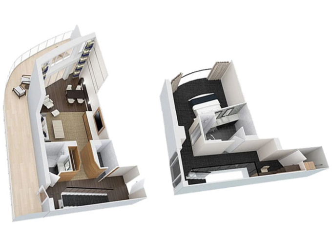 | OL - Owner Loft Suite s balkonem 90 m² / balkon 46 m². 2-podlažní apartmán. Výhody Royal Suite Class. 8. paluba. Max 4 osoby. | 592 111 Kč 296 055 Kč za osobu |