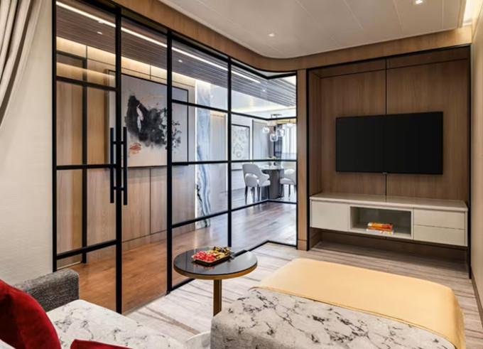 - Owner's Suites: soukromý oběd v apartmánu od 12:00 do 14:00 (volitelné) v den nalodění
