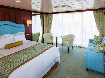| VS - Vista Suite 50 m² + rohový balkon 23 m². Výhody Vista Suite. 6/7. paluba vpředu. Max 2-4 osoby. Ložnice, předělená obývací a jídelní část, onyxová koupelna se sprchovým koutem a vířivkou, extra wc. | 764 077 Kč 382 038 Kč za osobu |