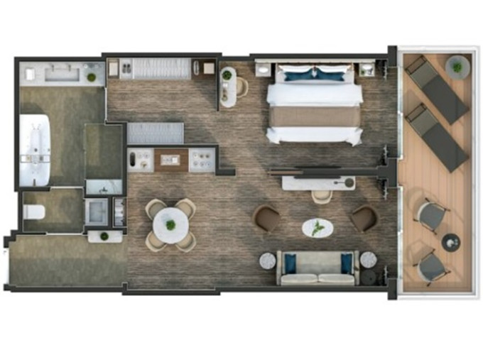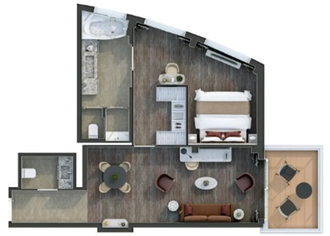 | JG - Junior Grand 1 Suite 54-58 m² (vrátane balkóna 6 m²), spálňa, oddelená obývacia a jedálenská časť | 914 553 Kč 914 553 Kč za osobu |