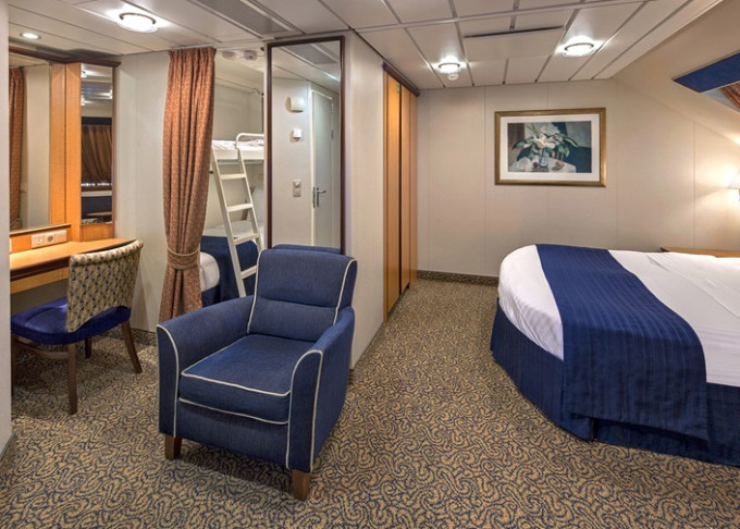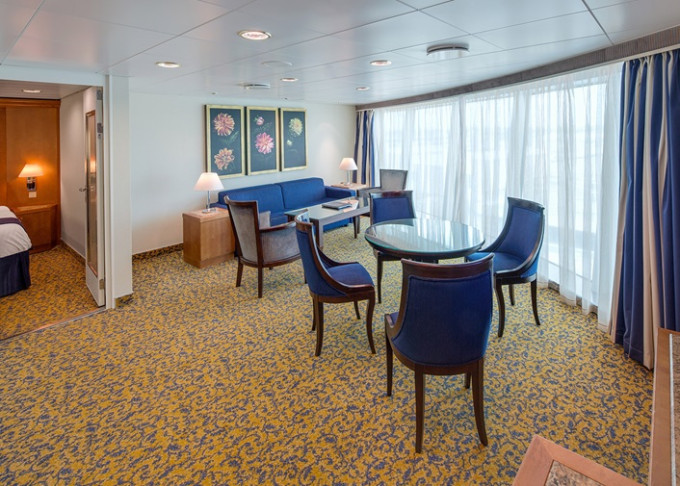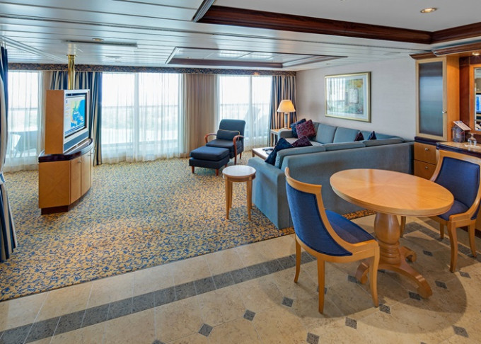 | VT - Ocean View Suite / 2 ložnice (bez balkonu) 54 m². Velké neotevíratelné okna. Výhody Royal Suite Class. 10. paluba. Max 8 osob. | 95 678 Kč 95 678 Kč za osobu |