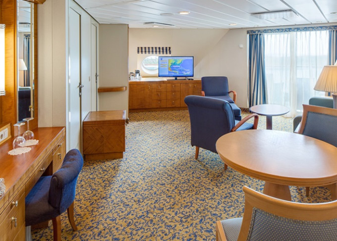 | RS - Royal Suite s balkonem 102 m² / balkon 10 m². Výhody Royal Suite Class. 10. paluba. Max 4 osoby. | 253 526 Kč 253 526 Kč za osobu | ||