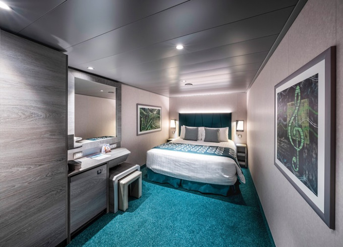 Kajuta vnitřní: 17 m², kajuta s manželskou postelí (na požádání 2 oddělené postele) a 1-2 vyklápěcí horní lůžka. Klimatizace, koupelna se sprchou a WC, toaletní stolek, skříň, interaktivní TV, sejf, telefon, vysoušeč vlasů, virtuální asistentka ZOE.