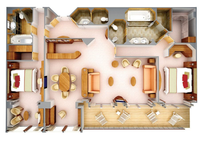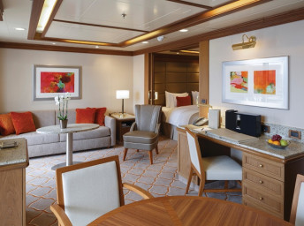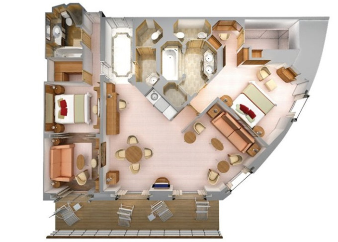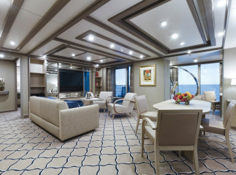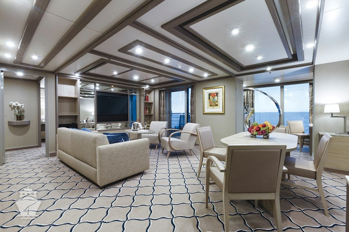 | S2 - Silver Suite 2 100 m² (včetně balkona). 2 ložnice, 2 koupelny, oddělená obývací a jídelní část. Horní paluby. | 814 602 Kč 814 602 Kč za osobu |