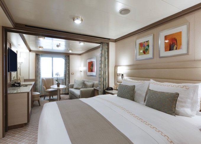 | SV - Superior Veranda Suite 29 m² + balkon 6 m². Ložnice s oddělitelnou obývací částí. Horní paluby. | 359 824 Kč 179 912 Kč za osobu | ||