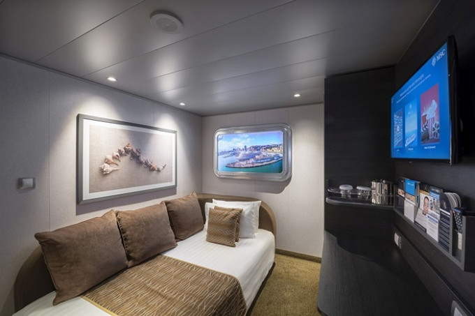 Kajuta vnitřní: od 12 m², kajuta s manželskou postelí (na požádání 2 oddělené postele) a 1-2 vyklápěcí horní lůžka. Klimatizace, koupelna se sprchou a WC, toaletní stolek, skříň, interaktivní TV, sejf, telefon, vysoušeč vlasů.