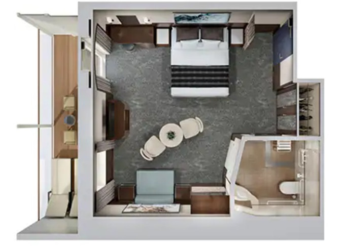 | SE - Forward-facing Penthouse 52 m² / balkon 18-22 m². Výhody Suite. 8/9. paluba - vpředu. Max 3-5 osob. | 269 818 Kč 134 909 Kč za osobu |