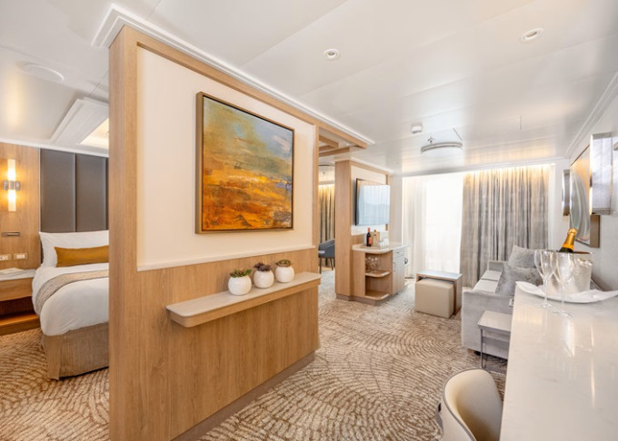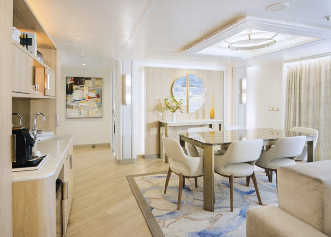 | S0 - Signature Sky Suite 117 m² (včetně balkonu). 16. paluba. Výhody Suite Signature. Max 5 osob. | 1 283 323 Kč 641 662 Kč za osobu | ||
