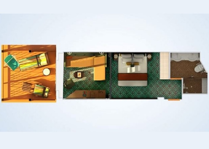 | HE - Kajuta Havana Cabana s patiom 17 m² / vnější patio 10 m². Tropický styl, vstup do exkluzivní zóny Havana. | 87 107 Kč 43 554 Kč za osobu |
