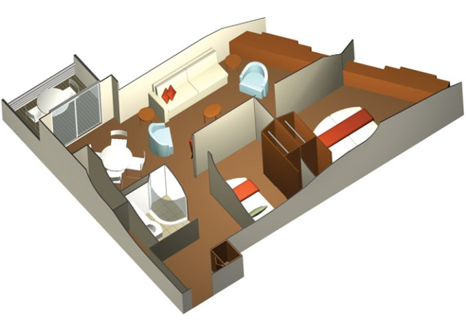 | S1 - Sky Suite 28 m² + balkon 7 m². 6. až 12. paluba. Max 4 osoby. Výhody Suite. | 317 520 Kč 317 520 Kč za osobu | ||