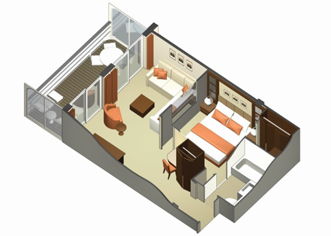 | SS - Sky Suite Sunset 28 m² / balkon 7 m². 6. až 12. paluba na zádi. Max 2-4 osoby. Výhody Suite. | 458 676 Kč 114 669 Kč za osobu | ||