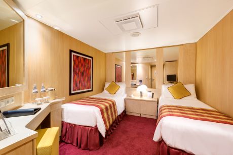 Kajuta vnitřní: 13 m², kajuta s manželskou postelí (na požádání 2 oddělené postele) a 1-2 vyklápěcí horní lůžka. Klimatizace, koupelna se sprchou a WC, toaletní stolek, skříň, interaktivní TV, minibar, sejf, telefon, vysoušeč vlasů.