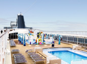 - sportovní aktivity na otevřených palubách (jogging, basketbal, fotbal, tenis), bazény a lehátka