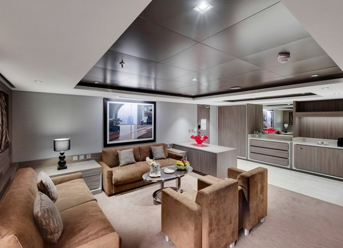 Aurea suite: 17 - 49 m² podle typu; kajuty mají prémiovou polohu v rámci lodě a jsou komforněji vybavené.