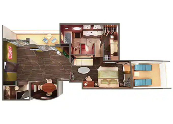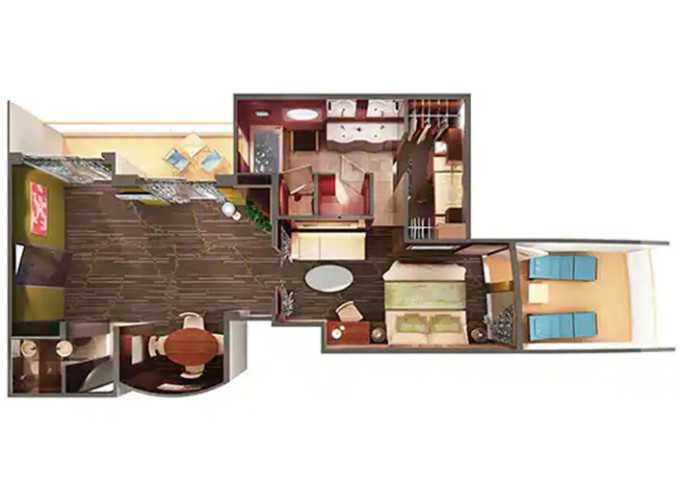 | S6 - Deluxe Owners Suite 62-68 m². Celoplošné neotevíratelné okna. Výhody Suite.12. paluba - vpředu. Max 4-6 osob. | 83 159 Kč 41 580 Kč za osobu |