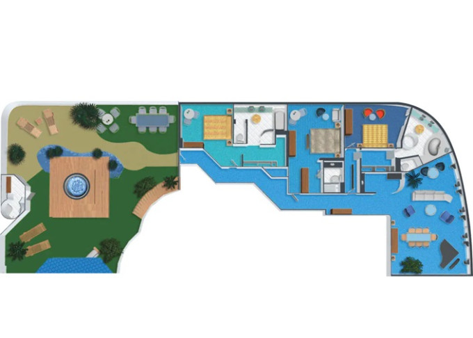 | S1 - Garden Villa - 3 ložnice 622 m² / balkon 414 m². Vířivka. Výhody Suite. 14. paluba - střed. Max 7 osob. | 263 321 Kč 131 661 Kč za osobu |