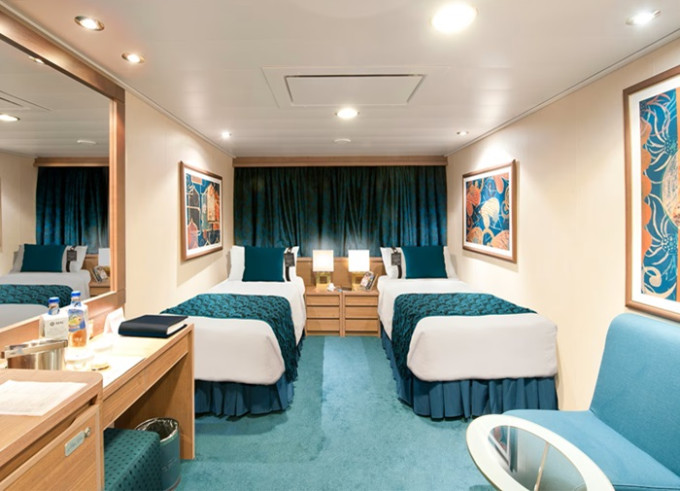 - ubytování v plně vybavené kajutě: vlastní koupelna se sprchou a WC, interaktivní TV, telefon, trezor, vysoušeč vlasů, regulovatelná klimatizace, minibar (za poplatek), Wi-fi (za poplatek)