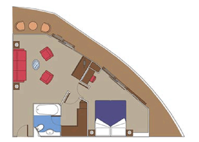- ubytování v plně vybavené kajutě: vlastní koupelna se sprchou a WC, interaktivní TV, telefon, trezor, vysoušeč vlasů, regulovatelná klimatizace, minibar (za poplatek), Wi-fi (za poplatek)