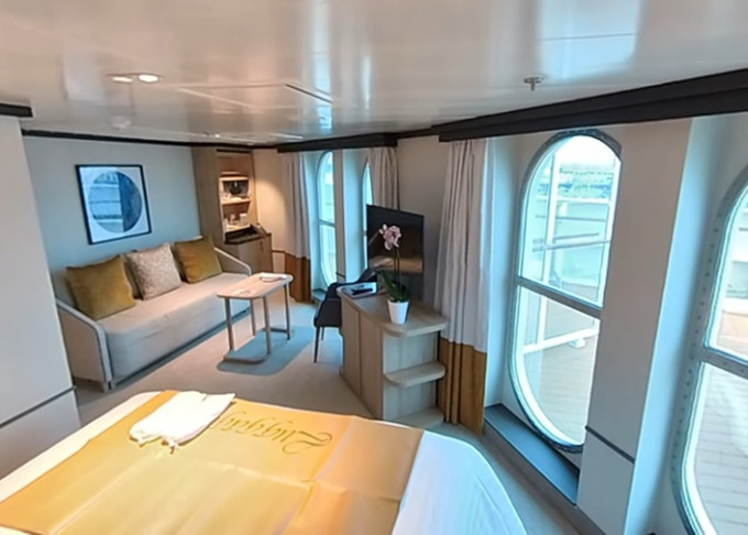 | B5 - Suite s balkonem 37 m² + balkon 11 m². Výhody Suite. 9. až 15. paluba. Max 3-4 osoby. Ložnice, obývací izba, mramorová koupelna s vířivkou. | 175 364 Kč 87 682 Kč za osobu | ||