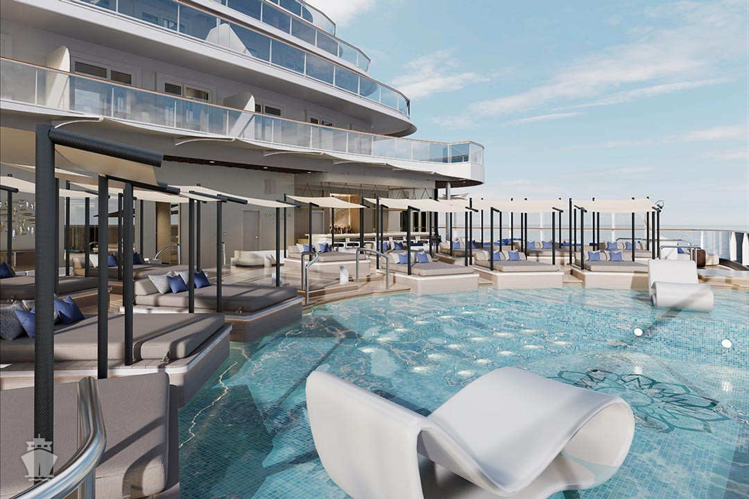Ubytování na lodi v celkovém počtu 461 apartmá s vlastním balkonem či terasou je rozdělené do 3 základních třích: