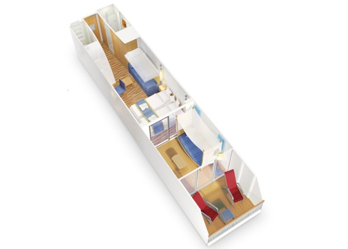 | VF - Kajuta s verandou Komfort PREMIUM od 24 m² / balkon od 6 m². Cenový model Premium. Max 4 osoby. | 66 717 Kč 33 359 Kč za osobu |