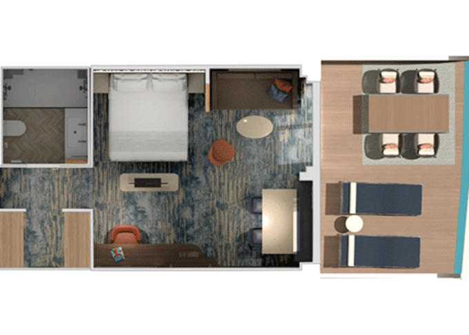 | HE - Kajuta Havana Cabana s patiem 19 m² / vnější patio 7,5 m². Tropický styl, vstup do exkluzivní zóny Havana. | 60 770 Kč 30 385 Kč za osobu | ||