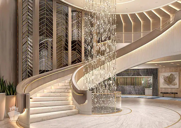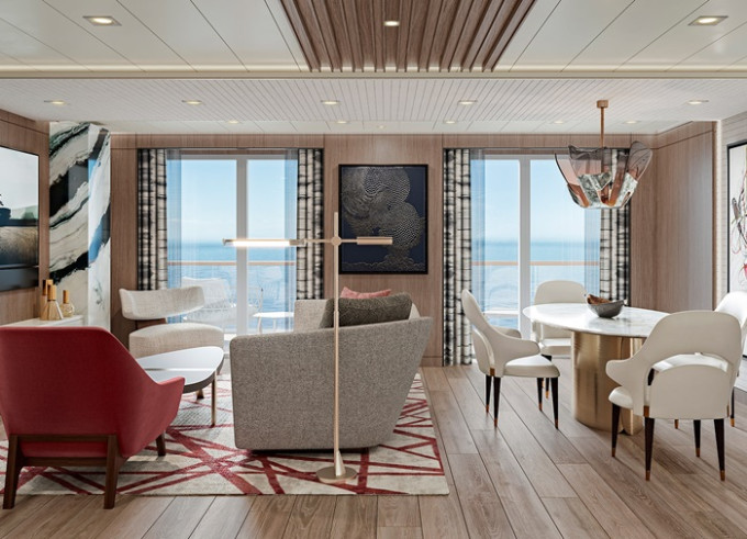 | OS - Owner’s Suite 123 m² + balkon s vířivkou od 62 m². Výhody Owners Suite. 8/9/10. paluba. Max 2-3 osoby. 4 izby: vstupná hala s pianom, ložnice, velká obývací místnost s jídelní částí, 2 koupelny (1 s vířivkou), 2 šatníky. | 662 127 Kč 331 063 Kč za osobu |