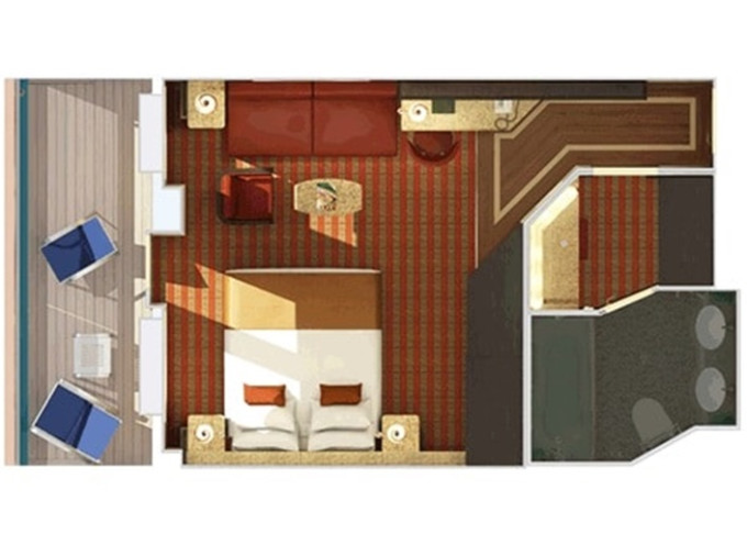 | 8N - Kajuta s větším balkonem Aft-View - výhled dozadu. 17 m² / balkon 5,5 m². Vzadu. | 31 984 Kč 15 992 Kč za osobu | ||