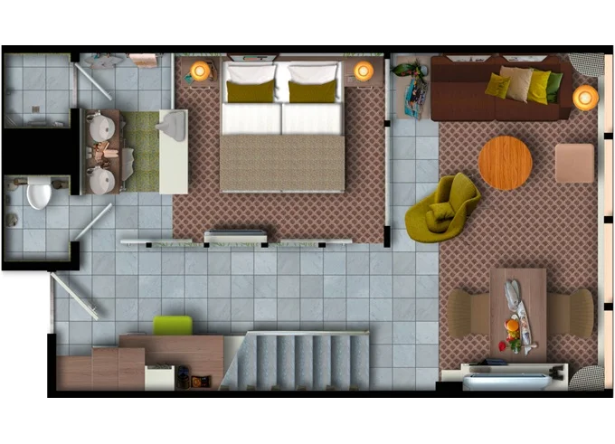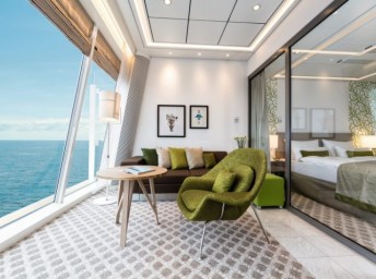 | SUHO - Himmel & Meer Suite 40 m² + prekrytá terasa 29 m² v patře se stolem, lehátky a s houpací sítí. Ložnice s obývací částí a jedálenským kútom. 15. paluba. Max 4 osoby. Výhody Suite. | 482 165 Kč 120 541 Kč za osobu |