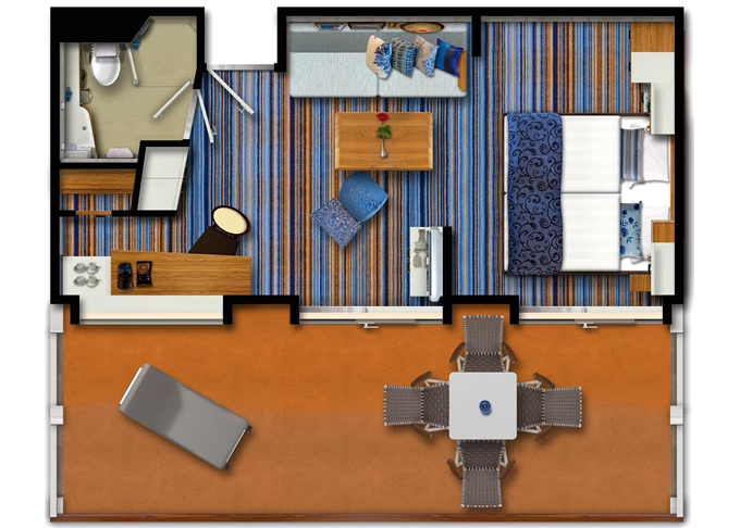 | JBAO - Junior Suite s balkonem 26 m² + balkon 8 m² se stolem. 10. paluba. Max 4 osoby. Výhody Junior Suite. | 297 305 Kč 297 305 Kč za osobu |