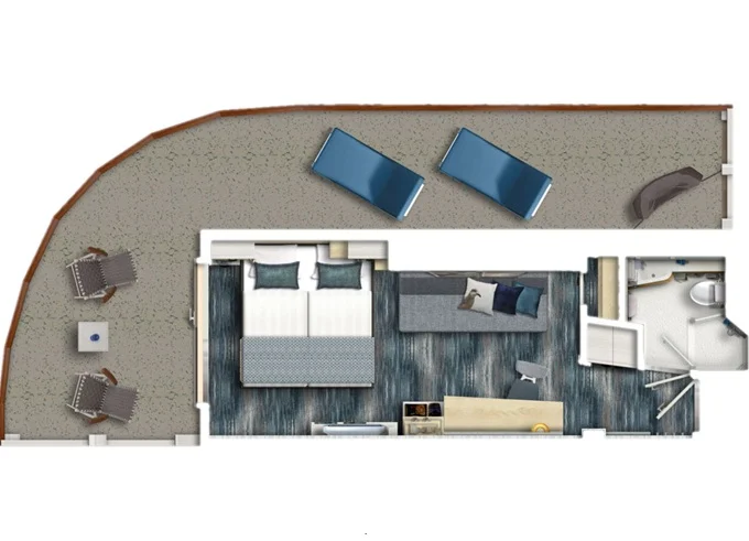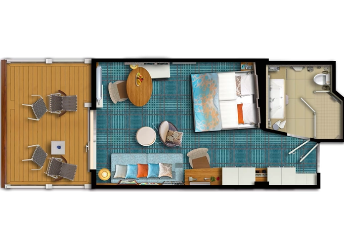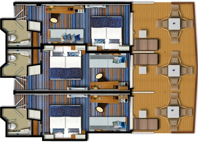 | VEPO - Kajuta s terasou Premium 17 m² + balkon 30 m² s houpací sítí a lehátky. 7-11. paluba. Max 3 osoby. | 178 513 Kč 178 513 Kč za osobu |