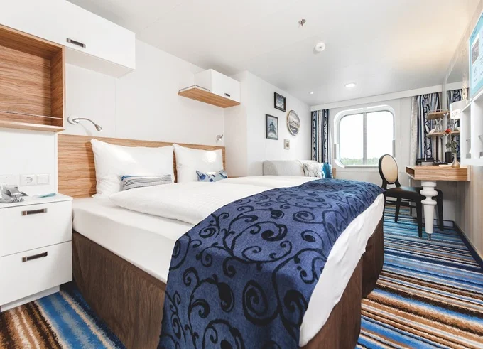 | AUAO - Kajuta s oknem kat. A 17 m². Neotevíratelné okno. 3,8. paluba. Max 4 osoby. | 158 373 Kč 79 186 Kč za osobu |