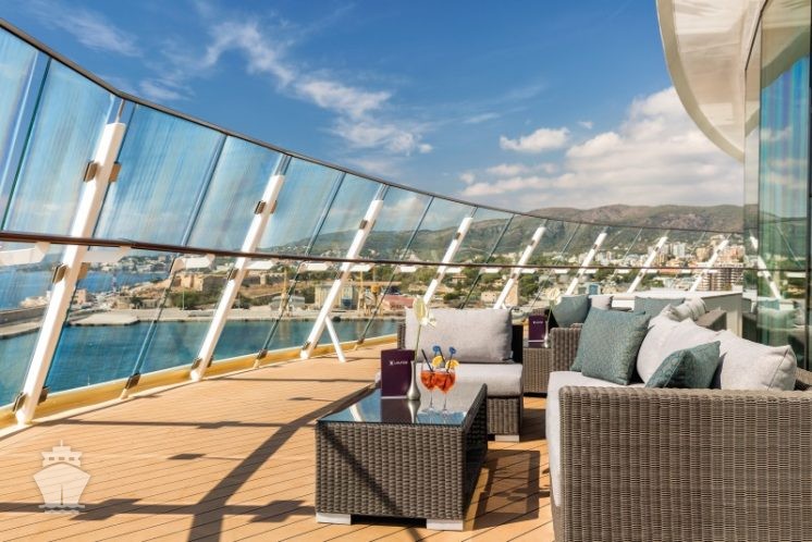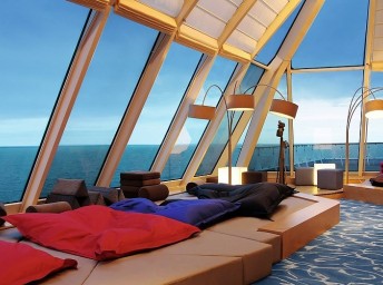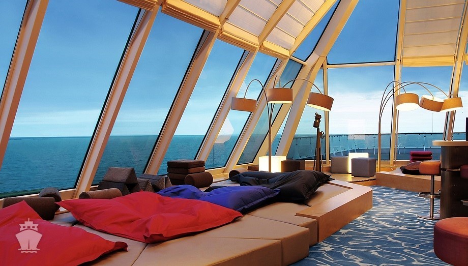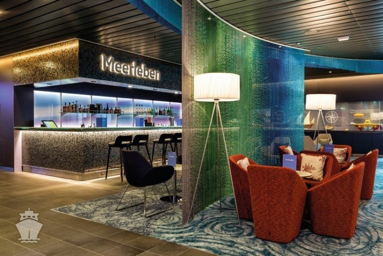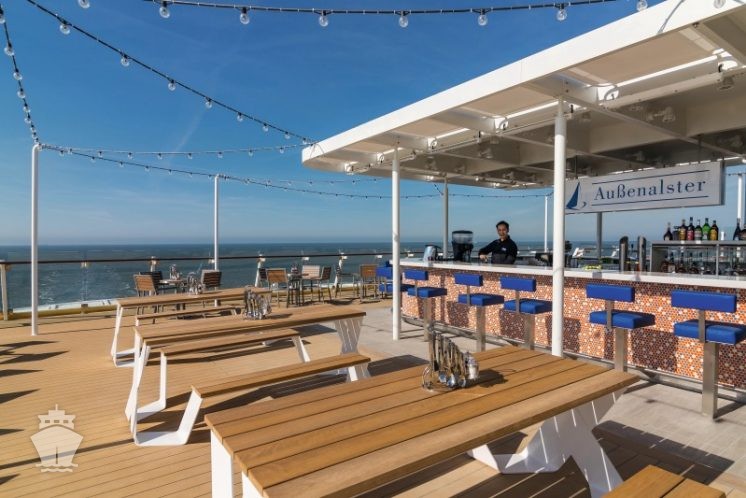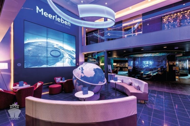 - Modrý balkon "The Blauer Balkong" na 14. palubě - vyhlídková 11 m2 plošina ze skla ve výšce 37 m vám dá pocit, že se vznášíte nad mořem.