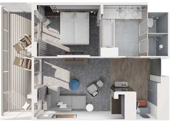 | JKBO - Junior Suite s balkonem B 26 m² + balkon 7 m² se židlemi a podnožkami. 8-12. paluba. Max 4 osoby. Výhody Junior Suite. | 104 899 Kč 104 899 Kč za osobu |