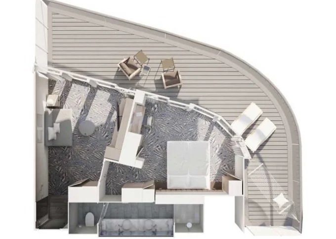 | SKBO - Fernweh Suite kat. B 28-38 m² + balkon 34 m² se stolem, lehátky a houpací sítí. 14. paluba. Max 4 osoby. Výhody Suite. | 153 875 Kč 76 937 Kč za osobu |