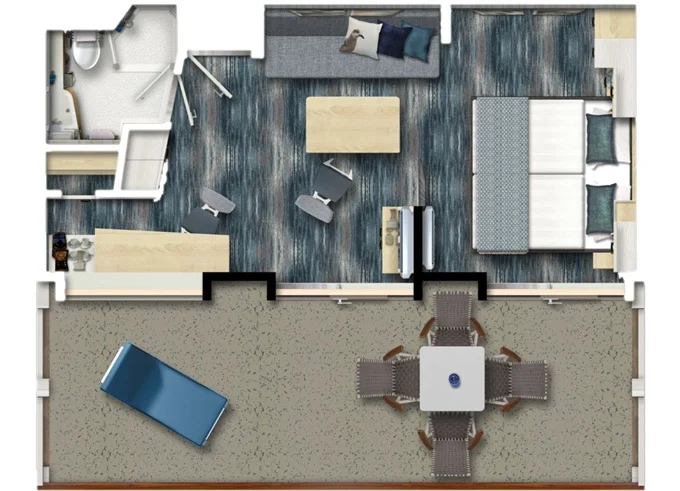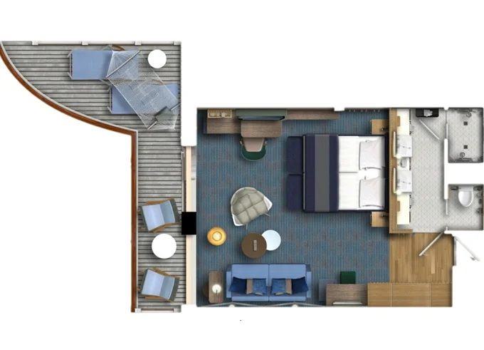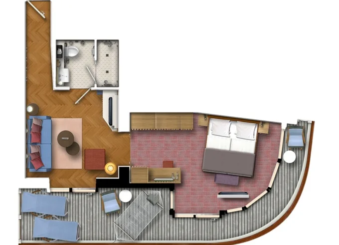 | JBAO - Junior Suite s balkonem 26 m² + balkon 7 m² se stolem. . paluba. Max 4 osoby. Výhody Junior Suite. | 199 777 Kč 199 777 Kč za osobu | ||