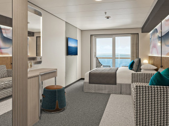 | SH - Suite s velkým balkónem na zádi 25 m² / balkón 34 m². 9. paluba - vzadu. Max 4 osoby. Výhody Suite. | 351 029 Kč 175 514 Kč za osobu |