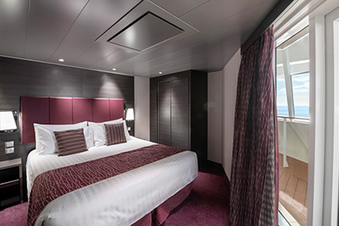 Kajuta s balkónem: 9 - 15 m², kajuta s manželskou postelí (na požádání 2 oddělené postele) a rozkládací pohovka. Klimatizace, koupelna se sprchou nebo vanou a WC, toaletní stolek, prostorná skříň, interaktivní TV, telefon, sejf, vysoušeč vlasů, osobní virtuální asistent ZOE. Balkony se stolkem a židlemi. Některé kajuty v kategorii Bella mají omezený výhled.